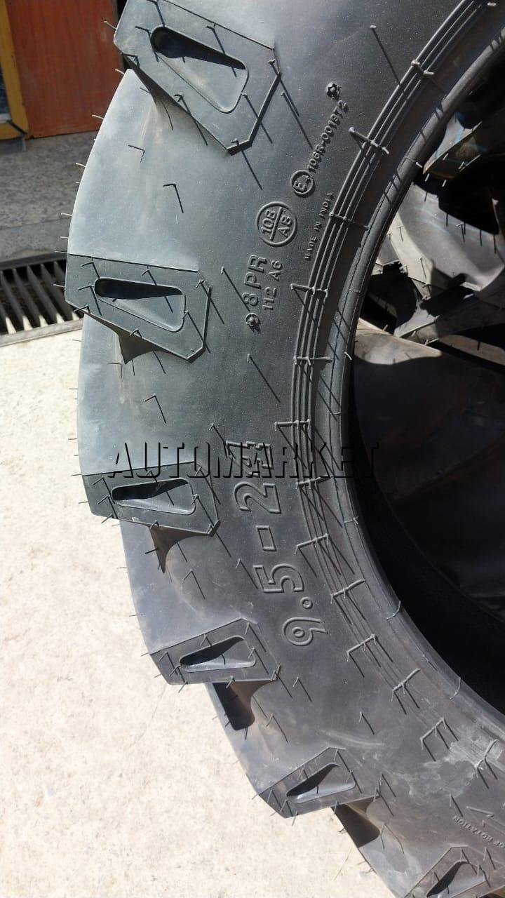 Balkrishna Industries Limited (BKT) produces the TR-135 pattern in the 9.5-24 8PR configuration with deep lug tread designed for agricultural traction and self-cleaning capability. The reinforced bias construction and cut-resistant compounds help improve durability and working life in tough farm environments.