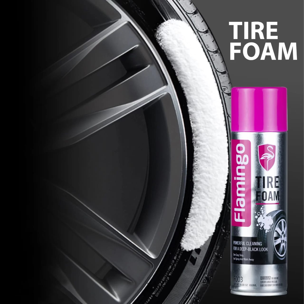 The Flamingo Tyre Foam is a high-performance car care product designed to clean, protect, and restore the appearance of vehicle tyres. It provides a rich foam formula that lifts dirt, grime, and road residue while leaving tyres with a clean, dark, and refreshed finish. As a result, it enhances the overall look of your vehicle while maintaining tyre condition.